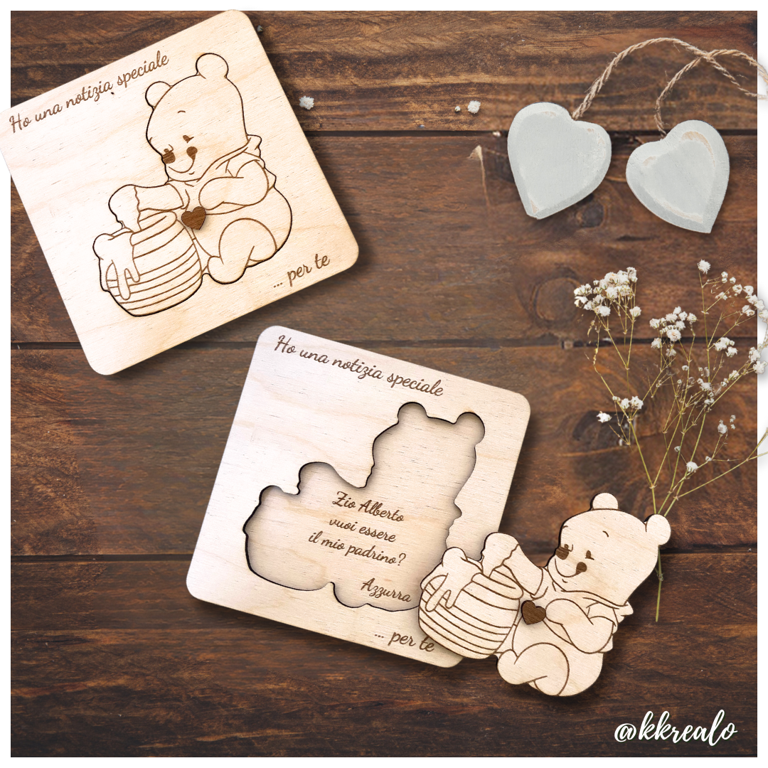 Quadretto proposta padrino, madrina in legno betulla a tema Winnie the Pooh- personalizzabile frase e personaggio Proposta battesimo