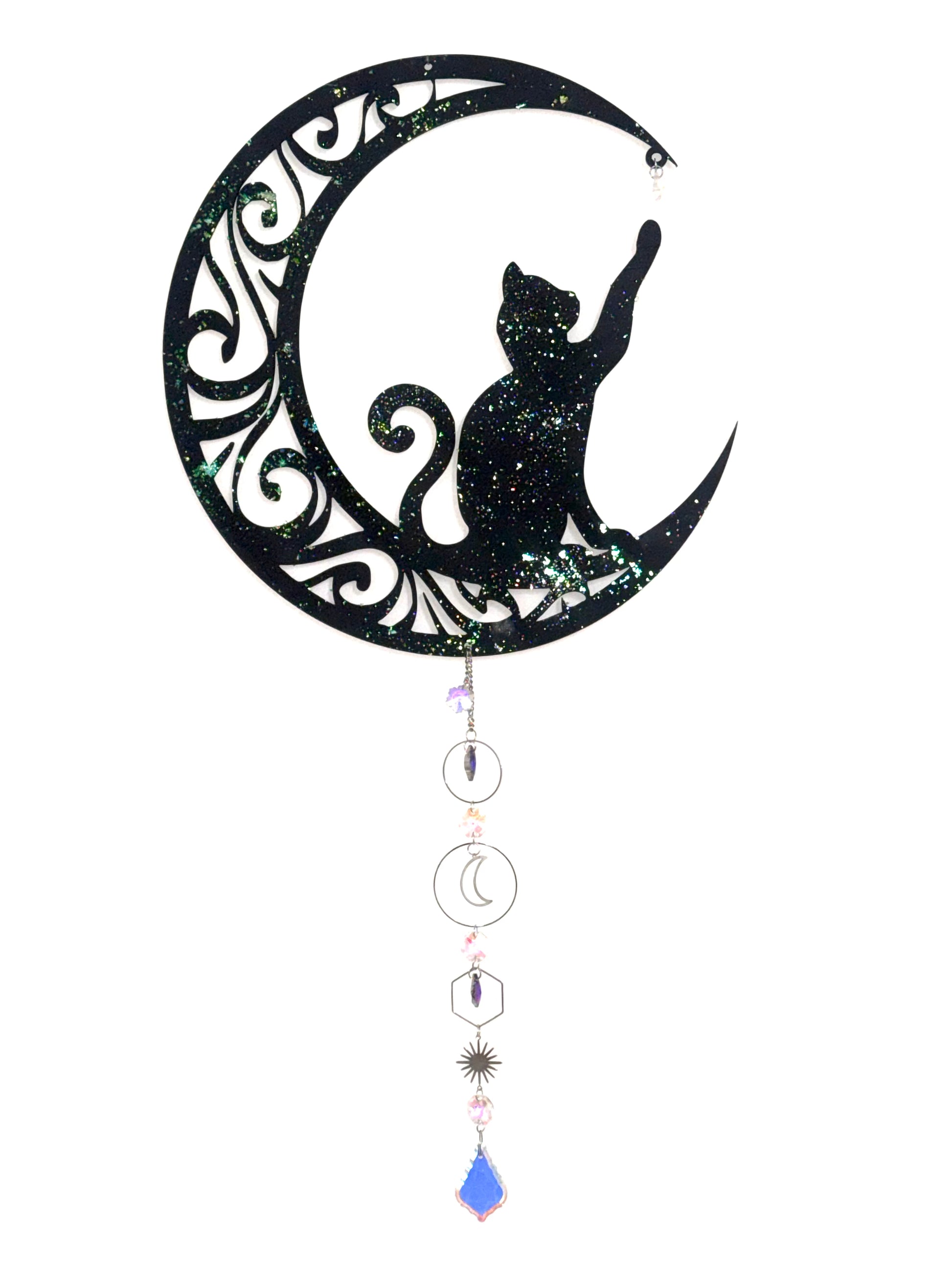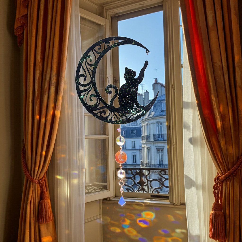 Decorazione cattura sole con cristalli di luce mod. Gatto sulla luna