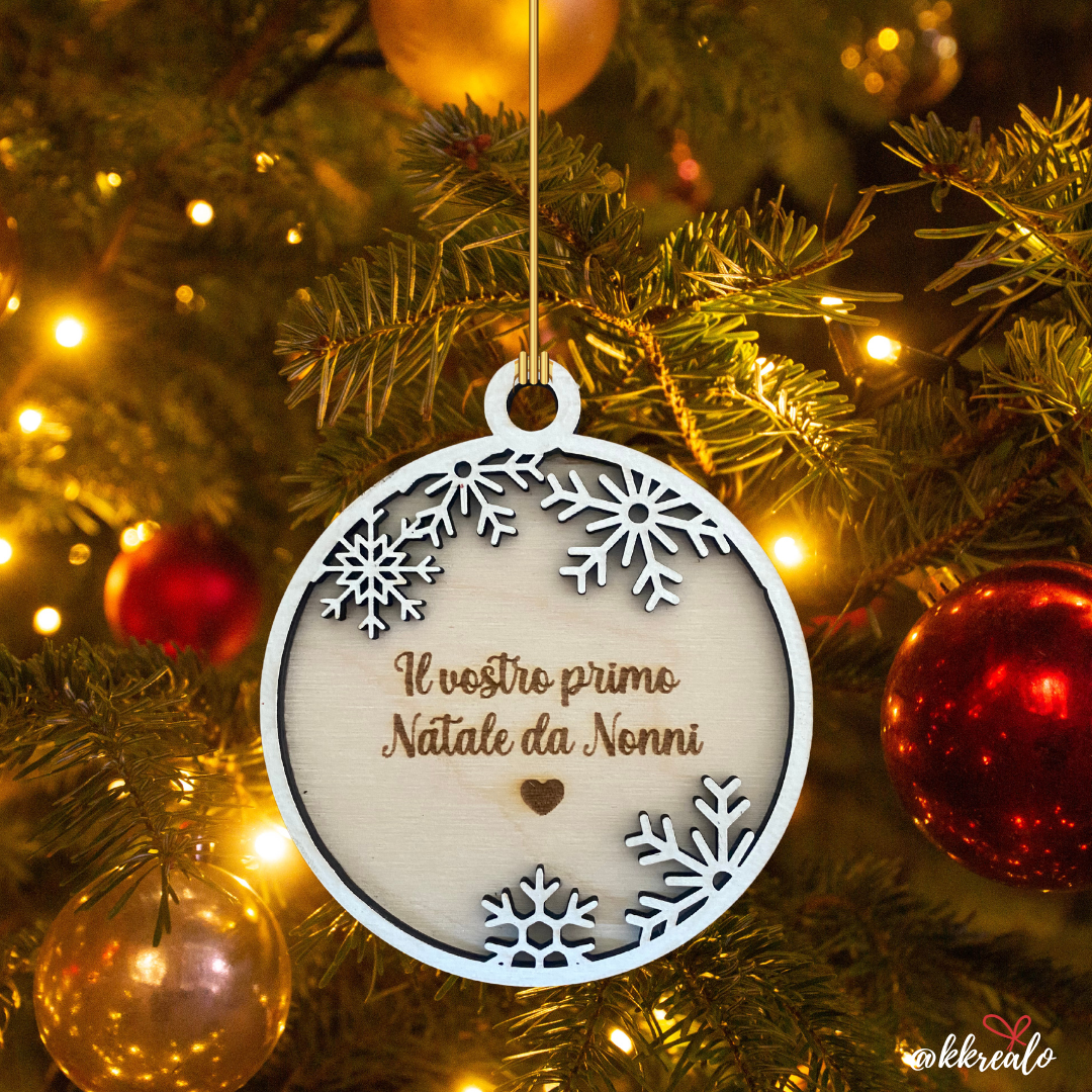 Pallina di natale in legno di betulla taglio laser - regalo ai nonni mod. 2 - personalizzabile