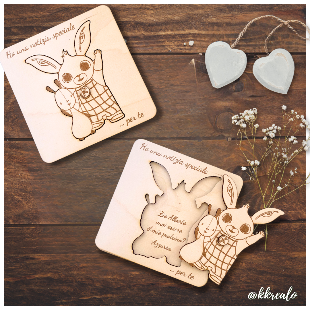 Quadretto proposta padrino, madrina in legno betulla a tema bing - personalizzabile frase e personaggio Proposta battesimo
