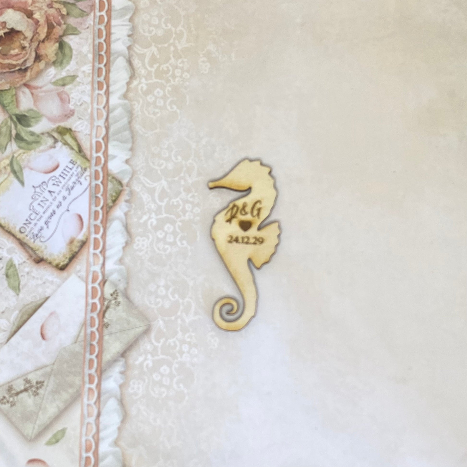 Segnaposto a tema mare - cavalluccio marino in legno di betulla