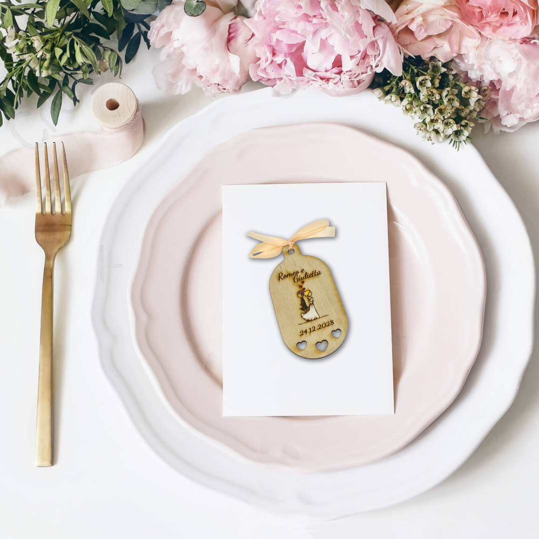Segnaposto con sposini 2 - realizzato in legno di betulla